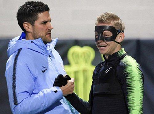 Полузащитник "Манчестер Сити" Александр Зинченко провел тренировку в специальной маске.