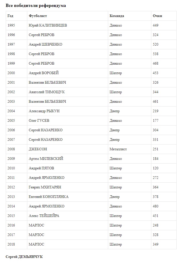 Напомним, что за 24 года победителем этого опроса становились 17 футболистов из четырех клубов (Динамо, Шахтера, Днепра и Металлиста).