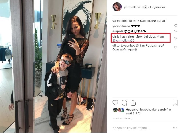 "Мой маленький пират", – подписала фото Инна Ярмоленко, на что получила бурную реакцию от немецкого фаната Боруссии: "Sexy delicious mum" ("Сексуальная и вкусная мама»).
