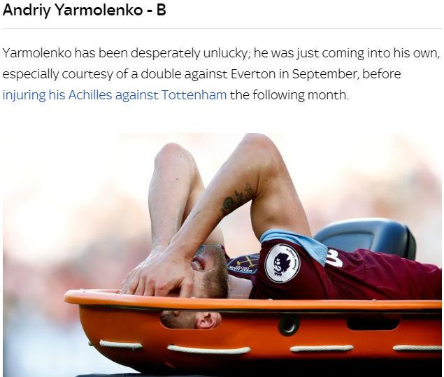 «Ярмоленко отчаянно не повезло, — пишет портал. — Как только Андрей начал утверждаться в статусе звезды Вест Хэма после дубля в ворота Эвертона, он получил травму ахилла в игре против Тоттенхэма.