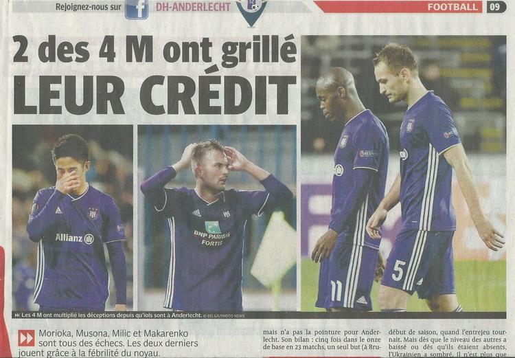 К числу провальных летних трансферов некоторые бельгийские СМИ отнесли и переход в Андерлехт из Кортрейка украинского легионера Евгения Макаренко. Вместе с тремя другими одноклубниками, Мариокой, Миличем и Музоной, наш земляк оказался на сегодняшний день одним из самых критикуемых игроков брюссельского клуба. Местная пресса так и окрестила их — «4М», не оправдавшие кредита доверия.