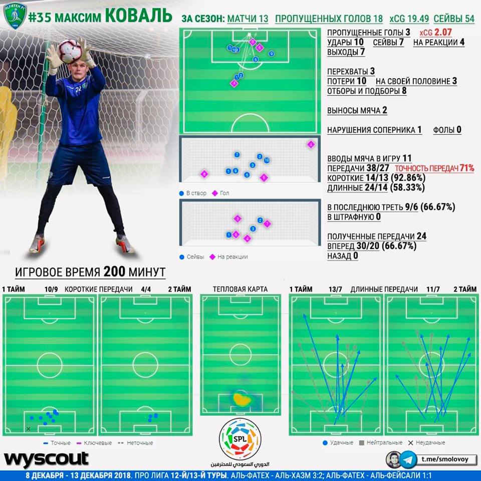 - В эти минуты Максим Коваль закончил матч 14-го тура с Аль-Иттифаком, закончил с 0 в графе пропущенные!