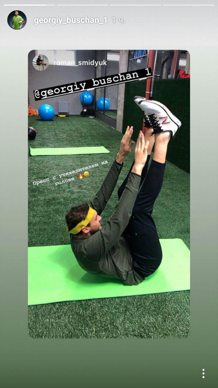 Голкипер "Динмо" Георгий Бущан в своем Instagram показал, какие упражнения он делает во время отпуска.
