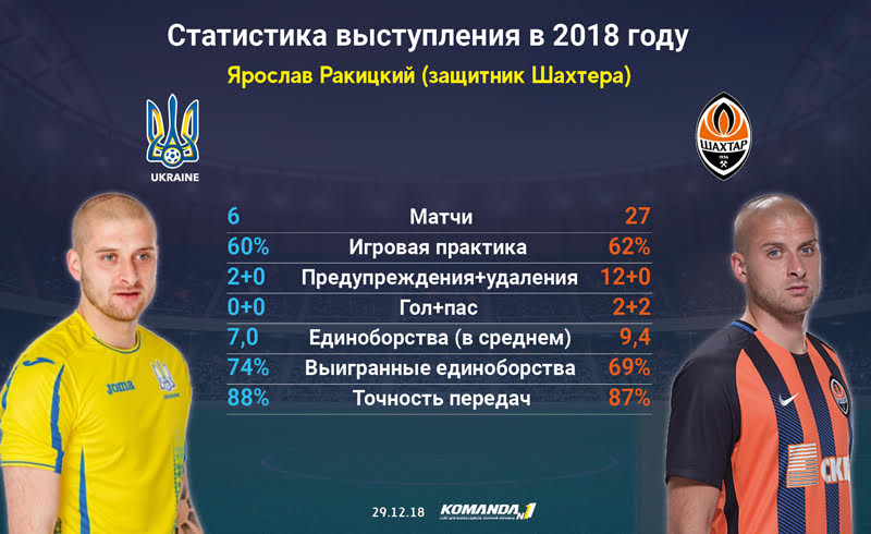 Подводим итоги выступления футболистов сборной Украины в 2018 году. На очереди — центральный защитник Шахтера Ярослав Ракицкий.