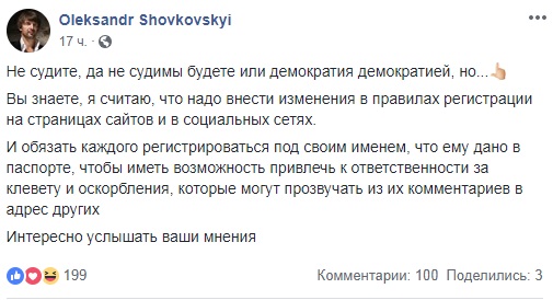 Интересно услышать ваши мнения, - написал Шовковский на своей странице в Фейсбуке.