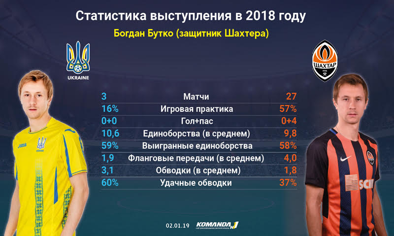 Весной он имел постоянную игровую практику, но осенью играл не так часто. В начале сезона главный тренер Шахтера Паулу Фонсека делал ставку на Олега Данченко, порой доверял место на правом фланге Николаю Матвиенко, но время показало, что, когда на своем привычном месте играет Богдан Бутко, эффективность атакующих действий горняков повышается. Порой его игра носит примитивный характер, но в ней точно хватает агрессии, и статистика фланговых подач это подтверждает. За сборную Бутко играл еще реже, но там он проиграл конкуренцию Александру Караваеву. Впрочем, самое важное, что, когда выходил на поле, каши точно не портил.