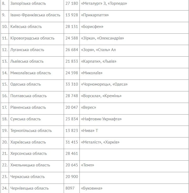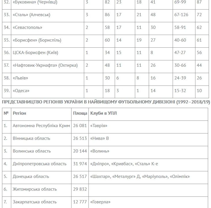 Нагадаємо, що ювілейним, 40-м клубом — учасником УПЛ — стала чернігівська «Десна», яка дебютували в найвищому дивізіоні поточного сезону. Загалом же, з 27 регіонів України (згідно з Конституцією, до них належать області, АРК плюс два міста державного значення) в еліті національного футболу були представлені 24. Винятки — Житомирська, Херсонська й Черкаська області.