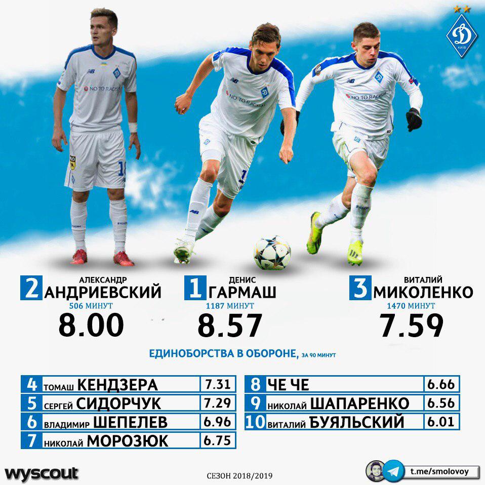 1. Денис Гармаш - 8.57 единоборств в обороне за 90 минут игрового времени.