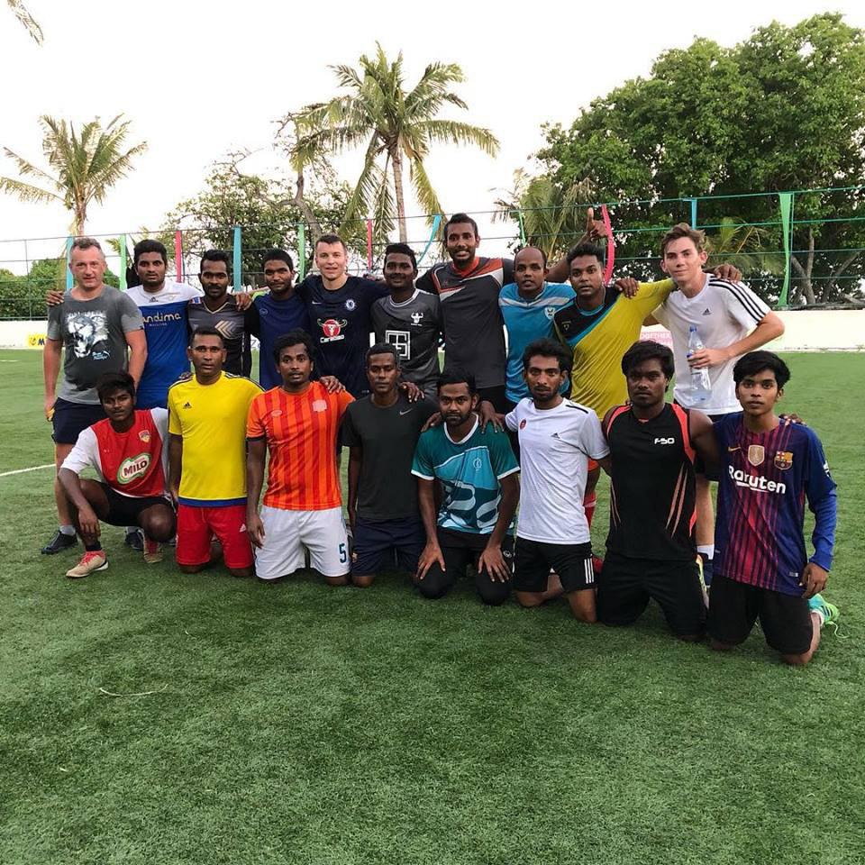 "Не забываем о футболе и на отдыхе!!! На Мальдивах очень любят футбол и знают, оказывается, об Украине все новости".