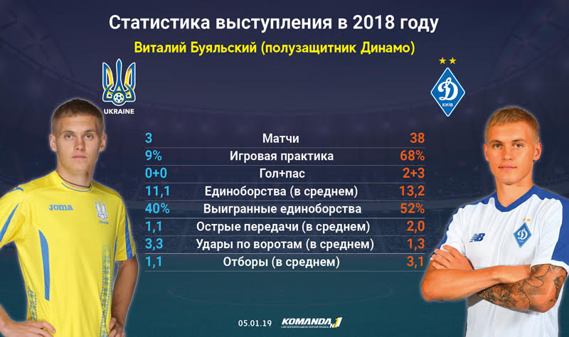 Подводим итоги выступления футболистов сборной Украины в 2018 году. На очереди — полузащитник Динамо Виталий Буяльский.