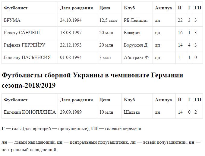 Футболисты сборной Португалии в чемпионате Германии сезона-2018/2019