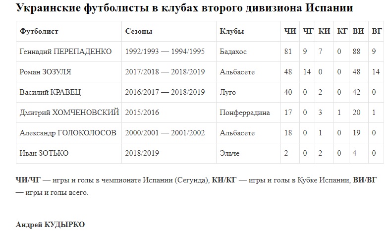 До этого рекорд принадлежал Геннадию Перепаденко, который дебютировал в Бадахосе в 28 лет. Случилось это в сезоне-1992/1993. К тому времени воспитанник запорожского футбола мог похвастать тремя матчами в сборной СССР (1990 год). И до сих пор является самым продуктивным украинцем в Сегунде — 81 матч.