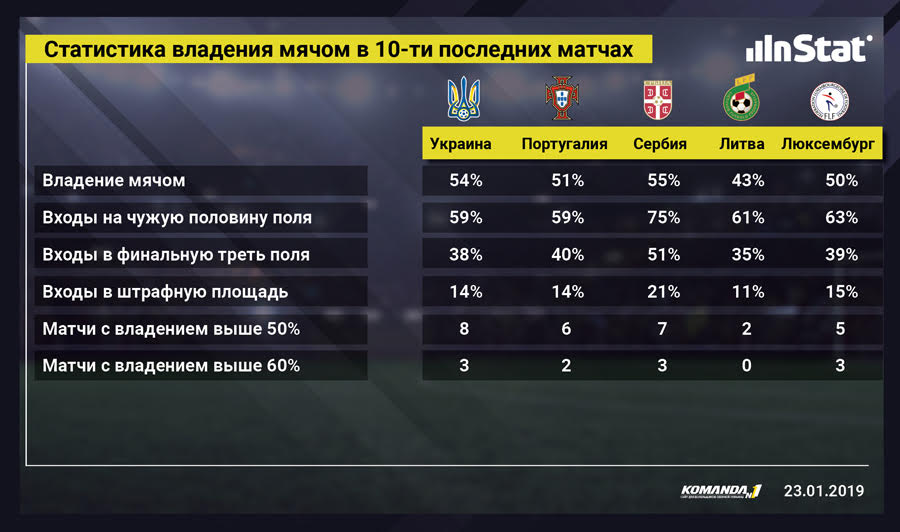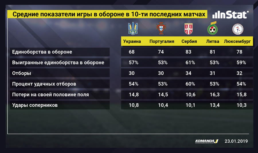 Португальцы выделяются в первую очередь тем, что в анализируемых 10-ти матчах играли с куда более мощными соперниками, но сербы все равно впечатляют своим атакующим потенциалом. Голевых моментов они создали почти столько же, сколько Украина и Португалия вместе взятые. У сербского коллектива больше всего единоборств в атаке, а нам в этом деле не мешало бы немного прибавить. Впрочем, тут может сказываться то самое желание украинцев действовать в комбинационном ключе и доходить до чужой штрафной площади с помощью короткого и среднего паса. Важно, что острых передач у нас вполне достаточно, а точность ударов — самая высокая среди всех команд группы. Правда, у сине-желтых большой процент выстрелов из-за пределов штрафной площади. Повысить доставку мяча в активную зону можно с помощью фланговых передач, но тут, опять-таки, все зависит от тактики тренеров.