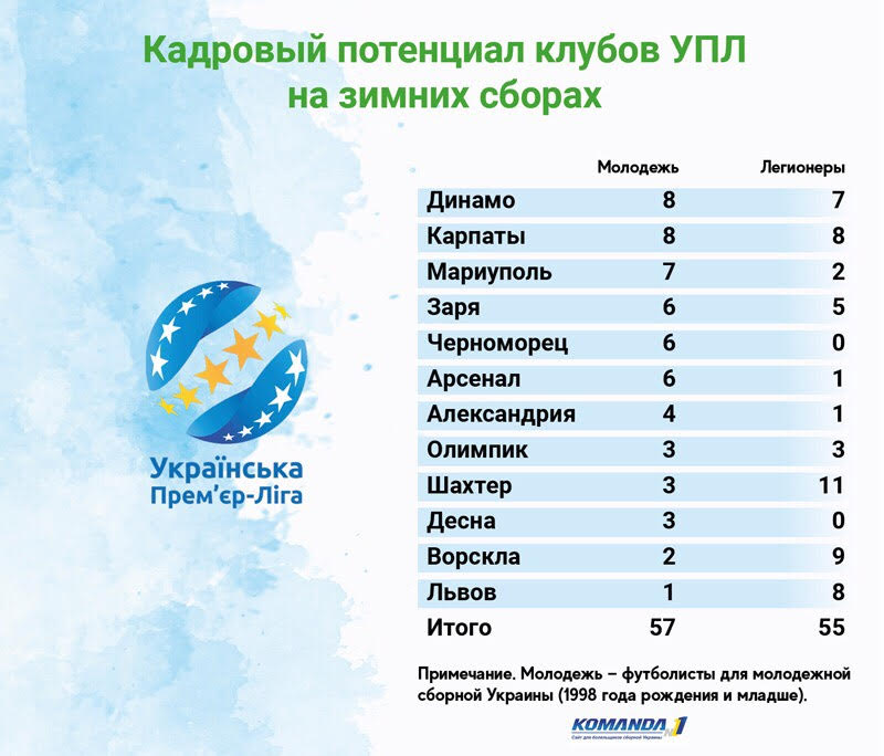 Zbirna.com сообщает, что на данный момент на сборах в клубах УПЛ находятся 55 легионеров — и это, похоже, еще не предел.
