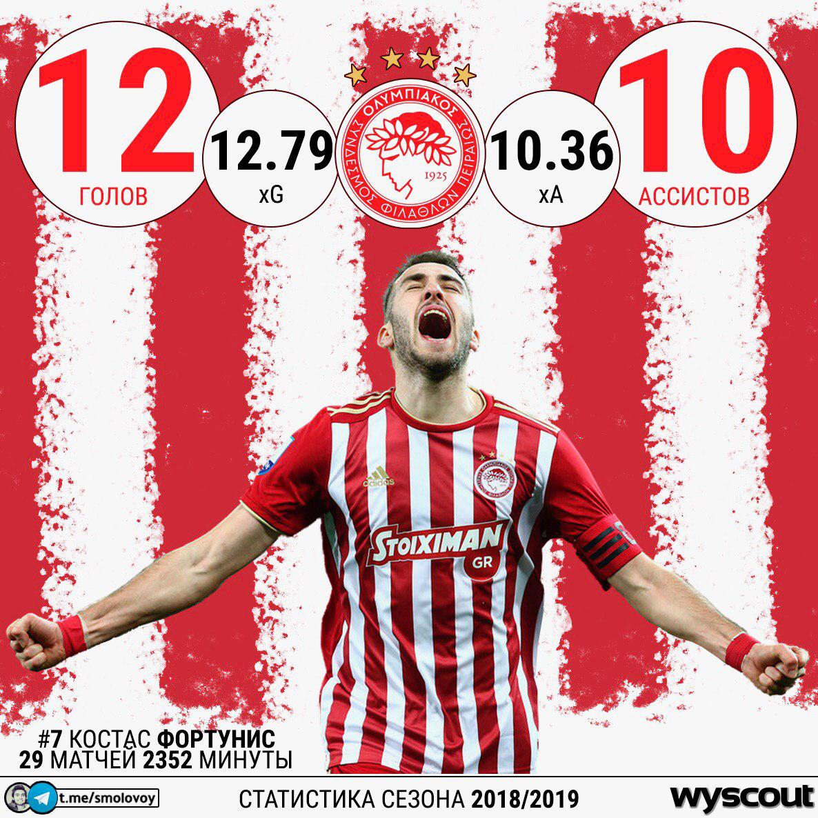 Блогер Михаил Смоловой в своем Telegram-канале анализирует игру полузащитника "Олимпиакоса" Костаса Фортуниса.