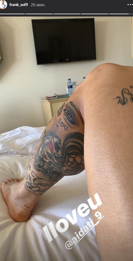 Форвард «Динамо» Фран Соль показал свою татуировку на ноге, которая посвящена его жене.