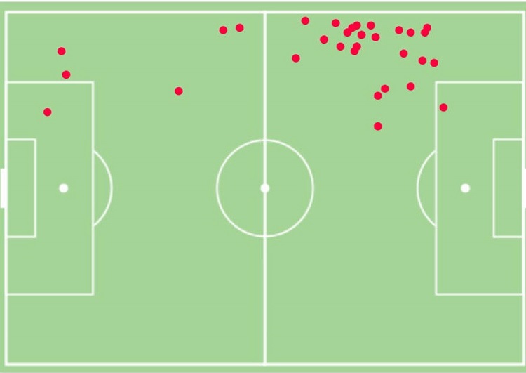 Карта действий Евгения Коноплянки в матче с Боруссией М