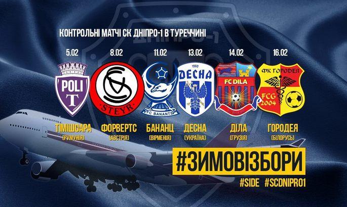 На первом турецком сборе у команды запланировано шесть спаррингов: 5 февраля с румынской "Тимишоарой", 8 февраля с представителем второго австрийского дивизиона - ФК "Форвертс", 11 февраля с армянским "Бананцом", 13 февраля с черниговской "Десной", 14 февраля с грузинской "Делой" и заключительным соперником на сборе 16 февраля станет ФК "Городея" из Беларуси. В графике контрольных игр могут быть изменения.