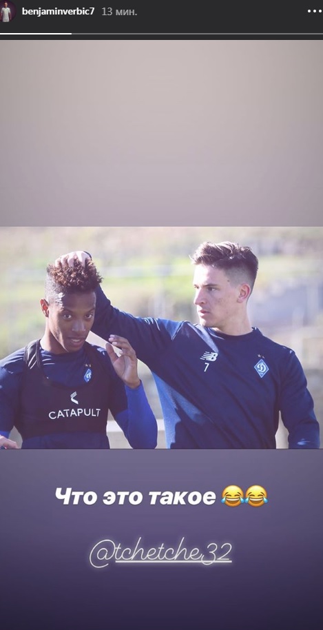 Полузащитник «Динамо» Беньямин Вербич потроллил своего одноклубника Че Че. Словенец потрепал бразильца по волосам, а потом подписал фотографию на своей странице в Инстаграме «Что это такое».