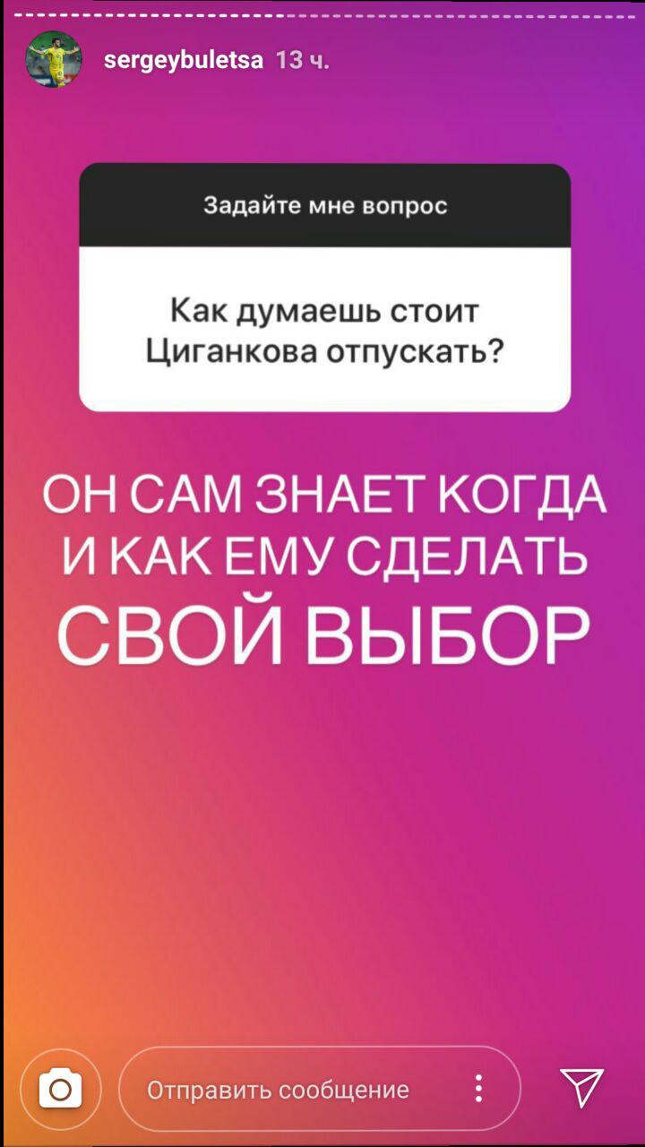 Полузащитник "Динамо" U-21 Сергей Булеца в своем Instagram ответил на вопрос о дальнейшем будущем Виктора Цыганкова.