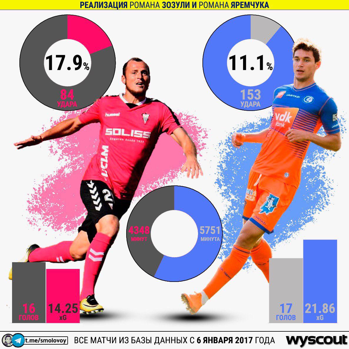 Теперь интереснее: по ожиданию Зозуля должен был забить 14.25 голов, а Яремчук - 21.86!