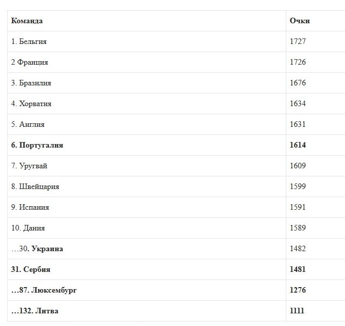 Сегодня ФИФА опубликовала рейтинг национальных сборных. По сравнению с предыдущим декабрьским реестром, сборная Украины опустилась на две позиции и теперь занимает 30 место в мире и 18-е в Европе, пишет zbirna.com.