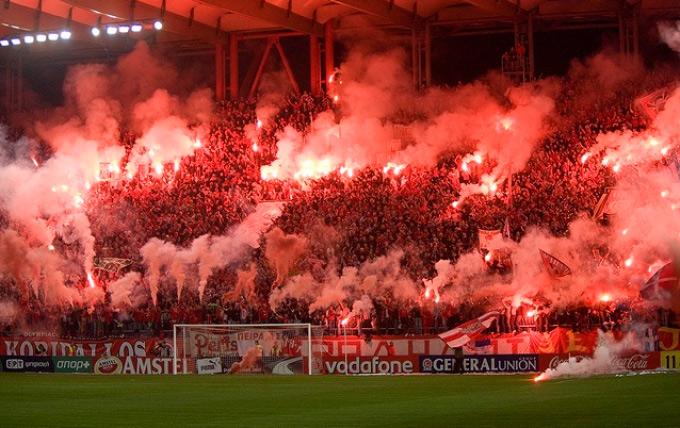 Перед матчем 1/16 финала Лиги Европы между "Олимпиакосом" и "Динамо" в секторе ультрас греческой команды произошел провокационный момент - там дважды вывешивали флаг России.
