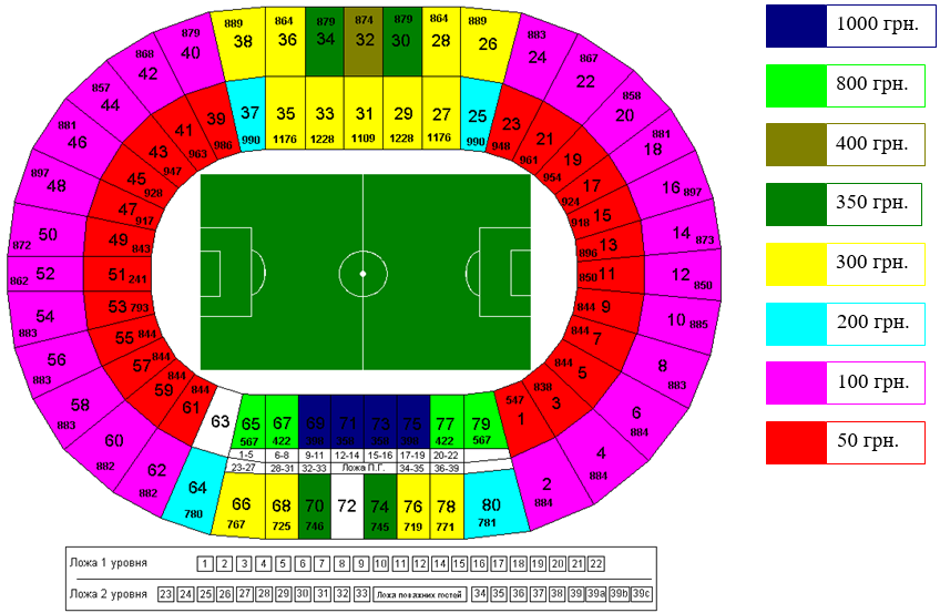 На гру доступні квитки наступних цінових категорій: 50, 100, 200, 300, 350, 400, 800 та 1000 гривень.