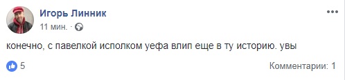 - Конечно, с Павелкой исполком УЕФА влип еще в ту историю. Увы, - написал Линник на своей странице в Фейсбуке.