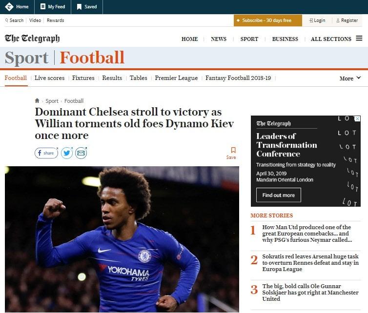 «Победа Челси в прогулочном темпе, а Виллиан вновь крушит старого противника — киевское Динамо» — так описывает происшедшее на Стэмфорд Бридж The Telegraph.