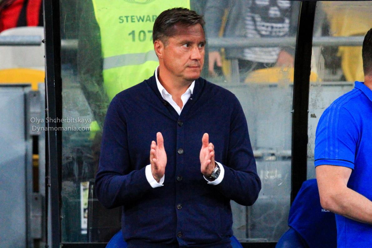 После матча с Челси в Лондоне наставник киевлян Александр Хацкевич оторвался от Сергея Реброва