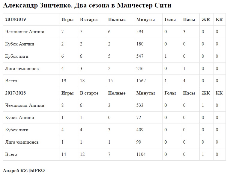 И сейчас, если внимательно сравнить все показатели этого и прошлого сезона, можно заметить, что только в одном случае нынешний Зинченко еще уступает. Это количество матчей в чемпионате Англии. В прошлом сезоне — 8, в нынешнем — 7. Качественные характеристики выше сейчас. Это и выходы в стартовом составе, и полные игры, и количество минут. Но для того, чтобы окончательно выйти на абсолютно лучшую статистику, нужно еще хотя бы разок сыграть в АПЛ.