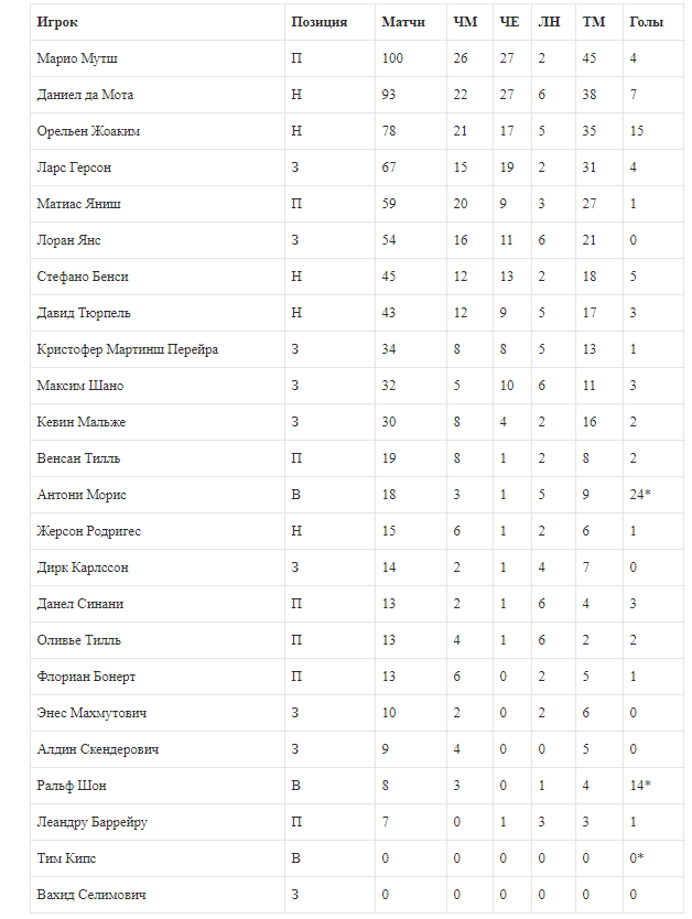 Что интересно, в отборе на ЧМ-2018 и Лиге наций участвовали практически все вызванные, тогда как опыт квалификации к Евро до победного матча с Литвой был только у 11-ти игроков. После дуэли с балтийцами таков появился у братьев Венсана и Оливье Тиллей, Антони Мориса, Жерсона Родригеса, Дирка Карлссона, Данела Синани и Леандру Баррейру.
