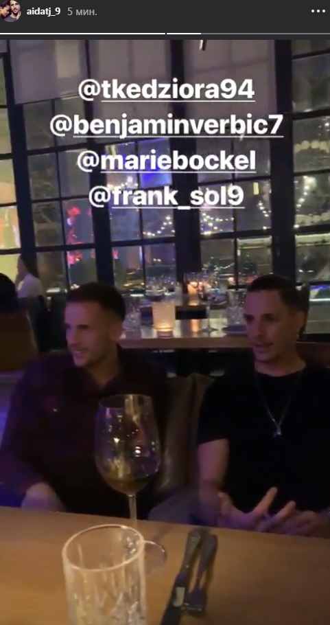 Легионеры "Динамо" Фран Соль, Беньямин Вербич и Томаш Кендзера проводят время вместе. На этот раз футболисты в компании своих жен и девушек решили посетить ресторан.