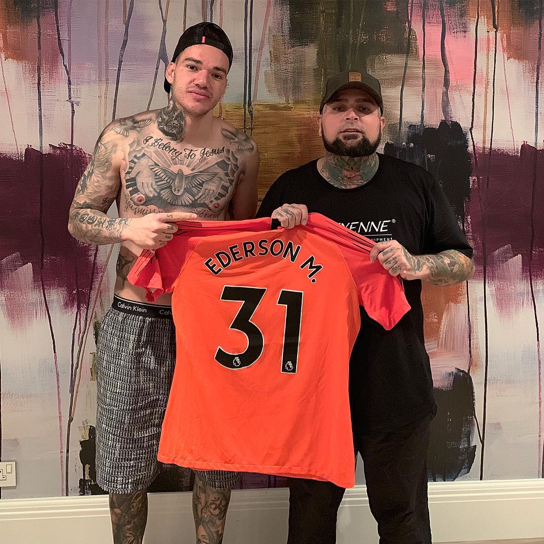 Животные, Христос и футбольный мяч - стильное тату вратаря "Манчестер Сити" Эдерсона