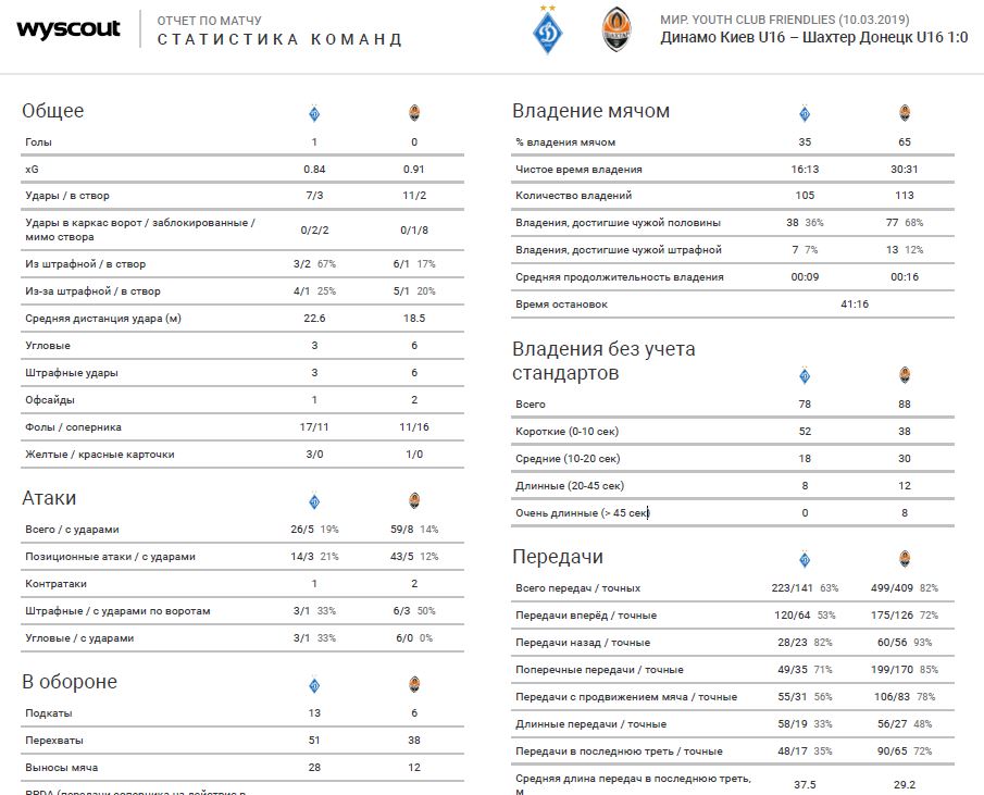 Футбольная аналитика от Wyscout: "Динамо" U-16 - "Шахтер" U-16