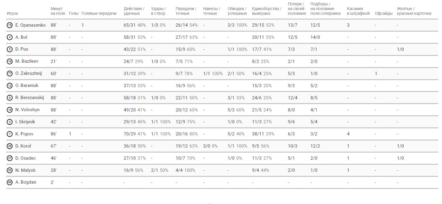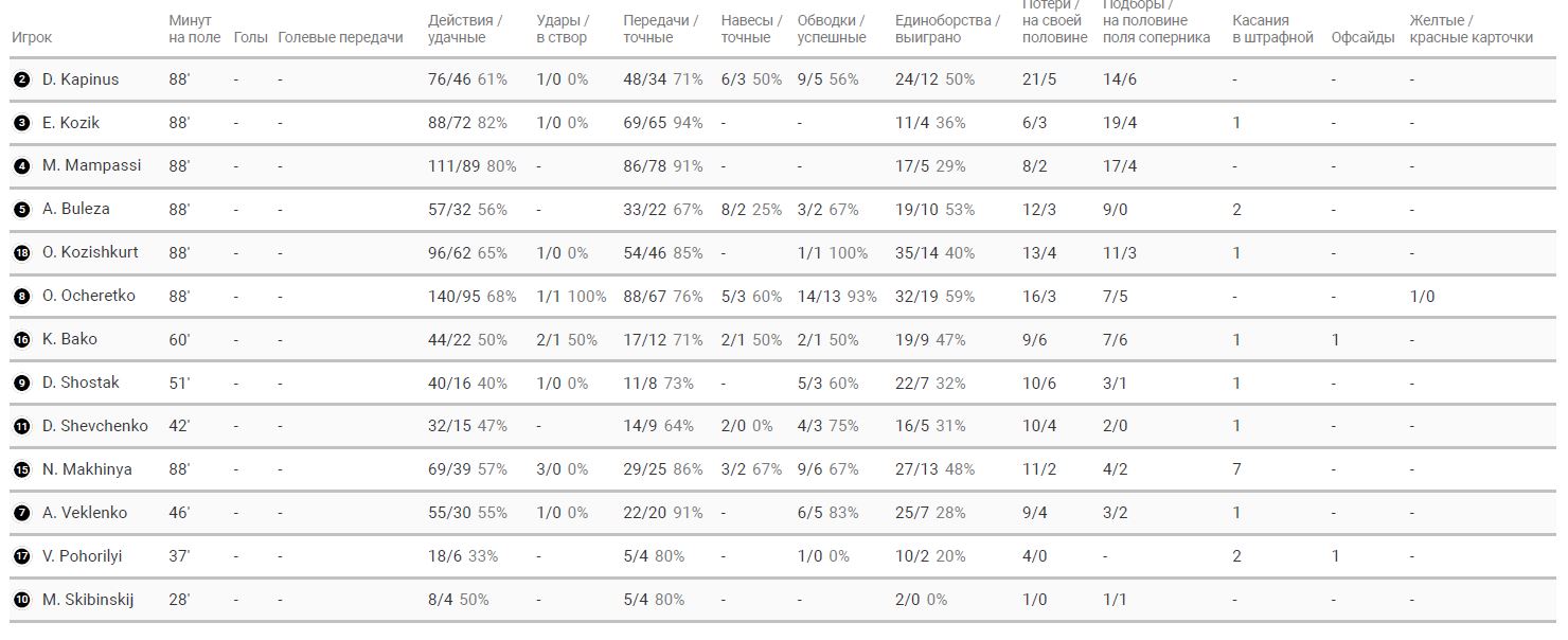 Бросилось в глаза ужасно низкое количество навесов у Динамо, которое всегда славилось своей фланговой игрой. Кроме того, у киевлян очень малое количество обводок.