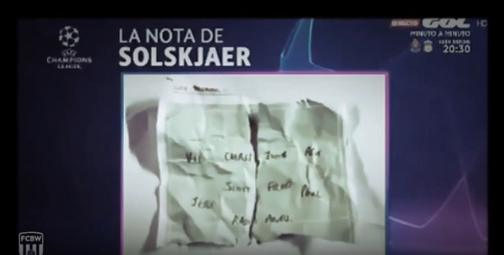 Голкипер каталонского клуба Марк-Андре тер Штеген подобрал записку, которую форварду «красных дьяволов» Маркусу Рашфорду передал главный тренер его команды Уле-Гуннар Сульшер. В ней наставник сообщил подопечному о смене игровой схемы с «4-3-3» на «4-2-2».