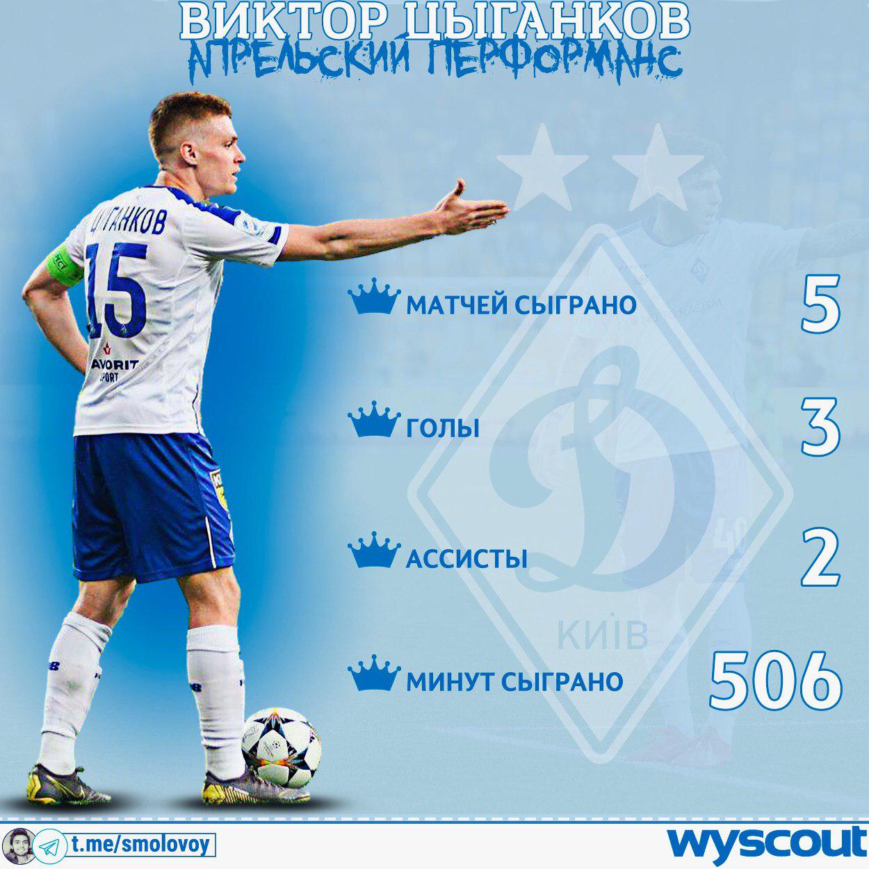 В апреле только 3 футболиста отыграли максимум минут в официальных матчах (506): Владимир Шепелев, Виталий Миколенко и...Виктор Цыганков.