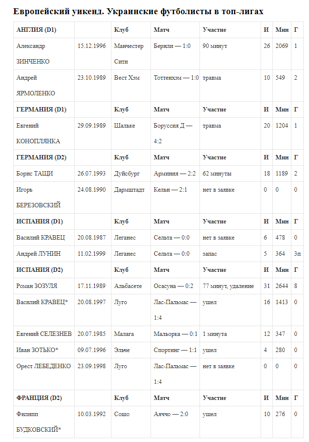 Василий Кравец (Леганес) в середине прошлой недели прервал застой и сыграл 68 минут в матче с Атлетиком. Но в поединке с Сельтой вновь не попал в заявку – пятый раз в шести турах. А вот его одноклубник Андрей Лунин, начиная с 9 марта, так на поле и не выходил.