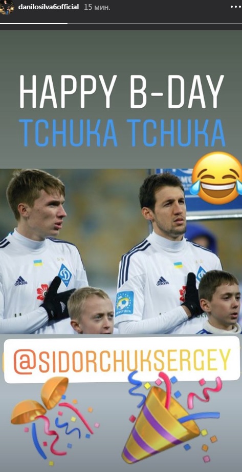 Бывший защитник "Динамо" Данило Силва поздравил с 28-летием полузащитника киевлян Сергея Сидорчука.