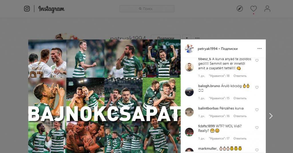 Вболівальники Ференцвароша атакували акаунт футболіста у соцмережах. Там Петряка називають зрадником та юдою, всіялко ображають і стверджують, що він продався за гроші головному ворогу Орлів.