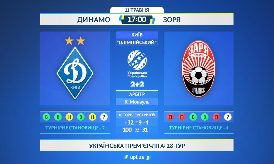 Динамо в УПЛ забиває голи Зорі з 25 лютого 2017 року впродовж 10-ти матчів (25 м'ячів).