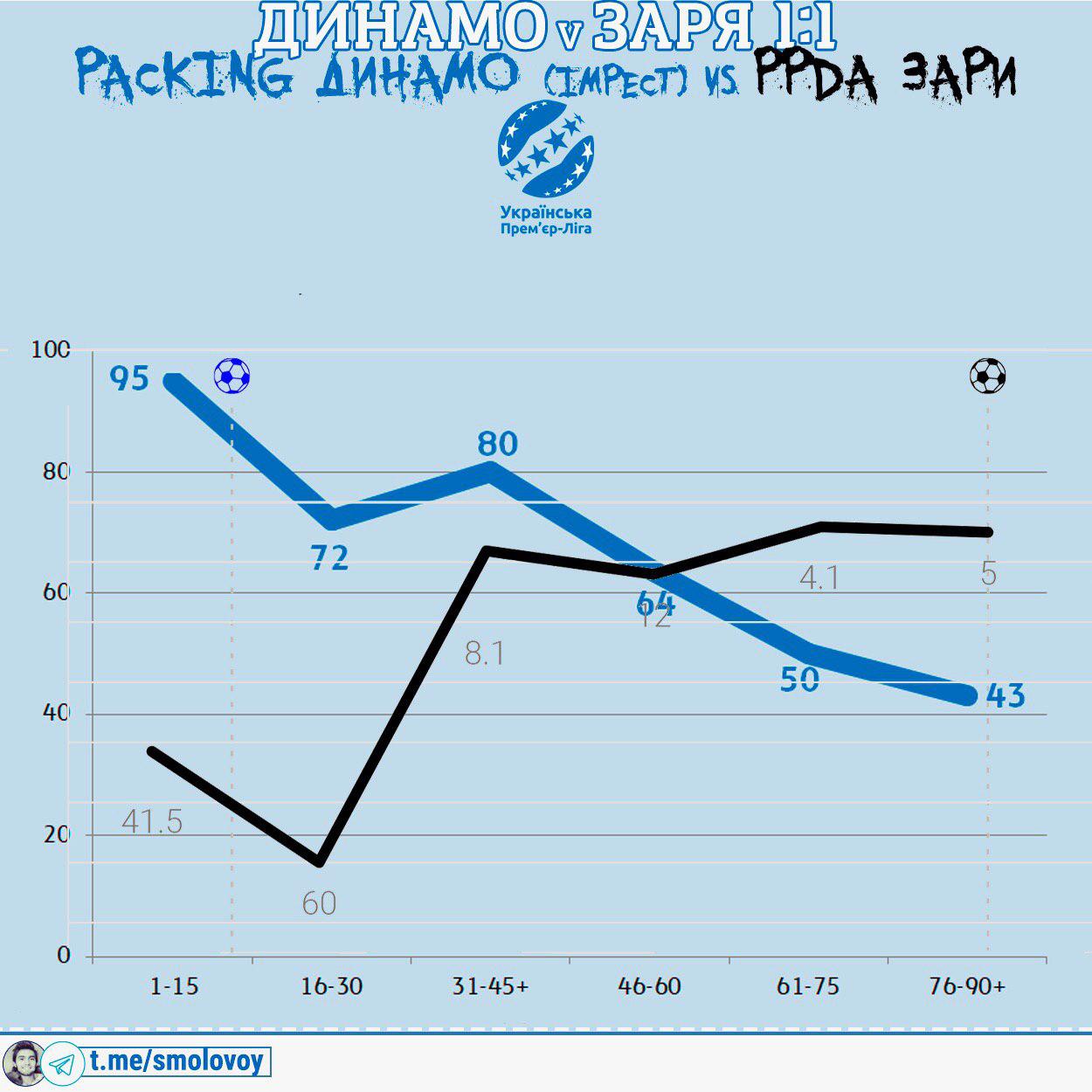 О деталях второго тайма ещё будет, а пока общая динамика «чистого» Packing (без Impect - отрезанных передачей защитников) с интенсивностью прессинга Зари.