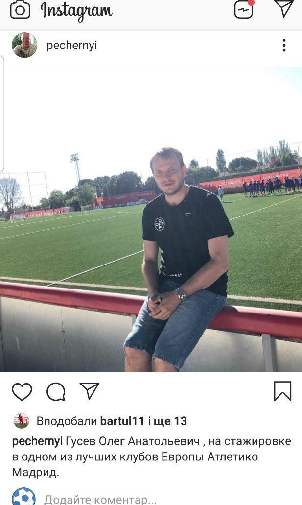 Известный футбольный консультант Олег Печерный рассказал о том, что бывший полузащитник "Динамо" и сборной Украины, а ныне ассистент старшего тренера молодежной команды киевлян Олег Гусев отправился на стажировку в мадридский "Атлетико".