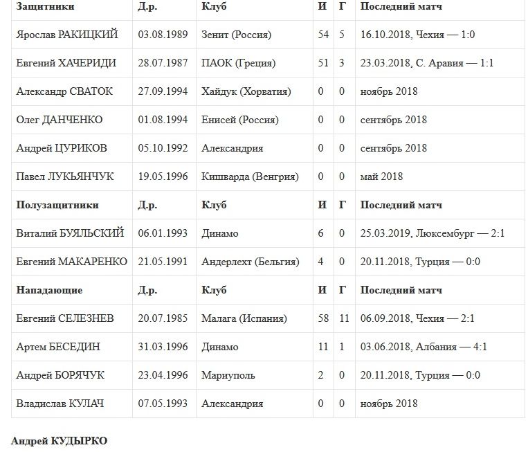 А вот Иван Ордец и Юрий Коломоец и не играли больше года, и не вызывались. Ордец последний матч провел в марте 2018-го, а Коломоец — в ноябре 2017-го. Точно так же в марте 2018-го последний раз играл за национальную команду Руслан Ротань. Но он еще прошлой осенью перешел на тренерскую работу.