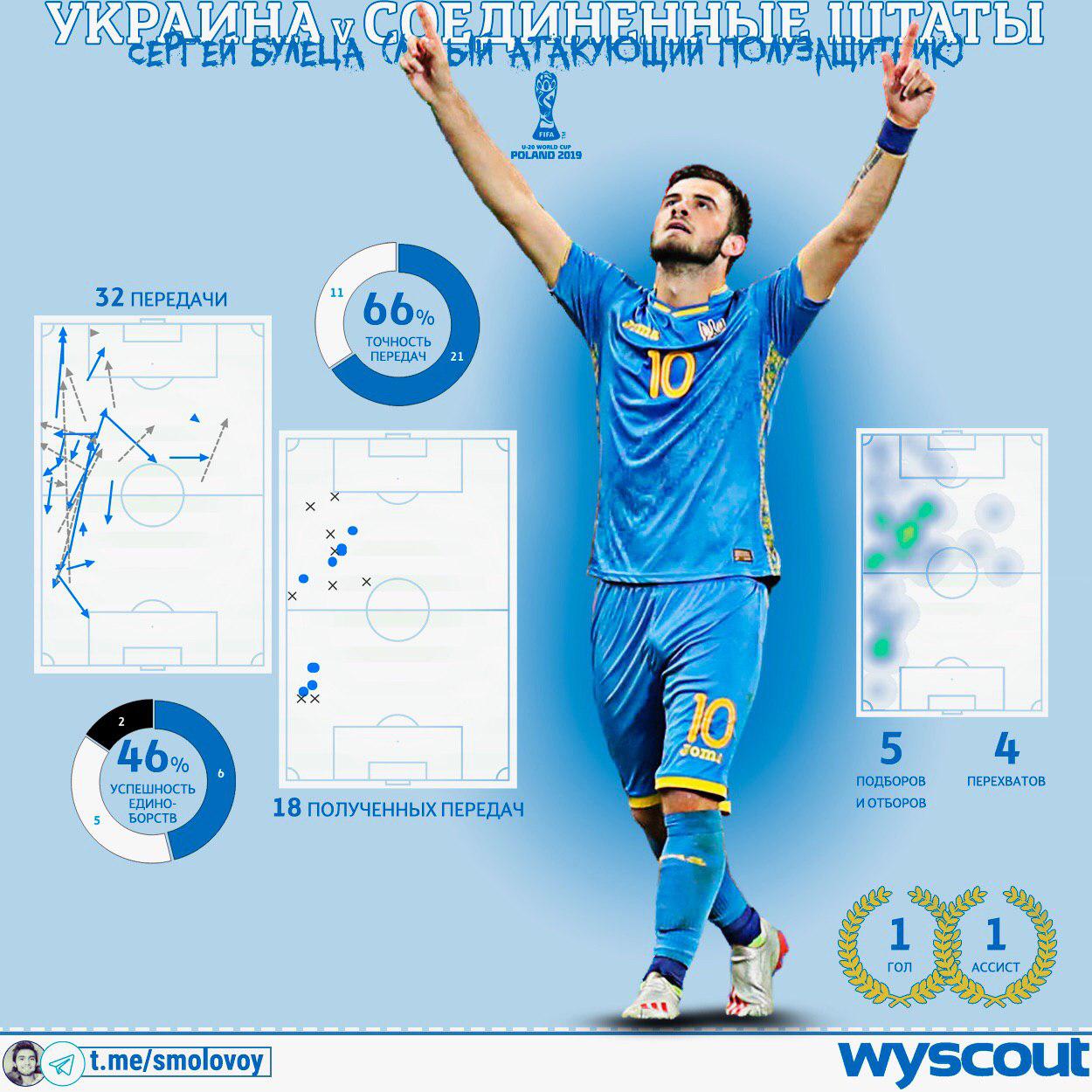 Блогер Михаил Смоловой в своем Telegram-канале анализирует игру динамовца Сергея Булецы за сборную Украины U-20 в матче ЧМ-2019 против США.