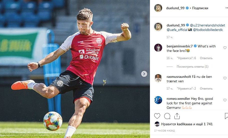 Полузащитник "Динамо" Беньямин Верьич подшутил над своим одноклубником Миккелем Дуэлунном в Instagram.