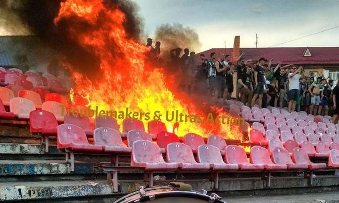 Фанаты "Карпат" сожгли трибуну на луцком стадионе "Авангард"