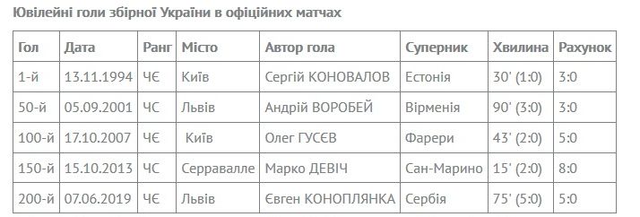 Другий гол Євгена Коноплянки у ворота збірної Сербії став для нашої збірної ювілейним, 200-м, забитим у матчах рангу чемпіонату світу (113 м’ячів), Європи (82) а також Ліги націй (5).